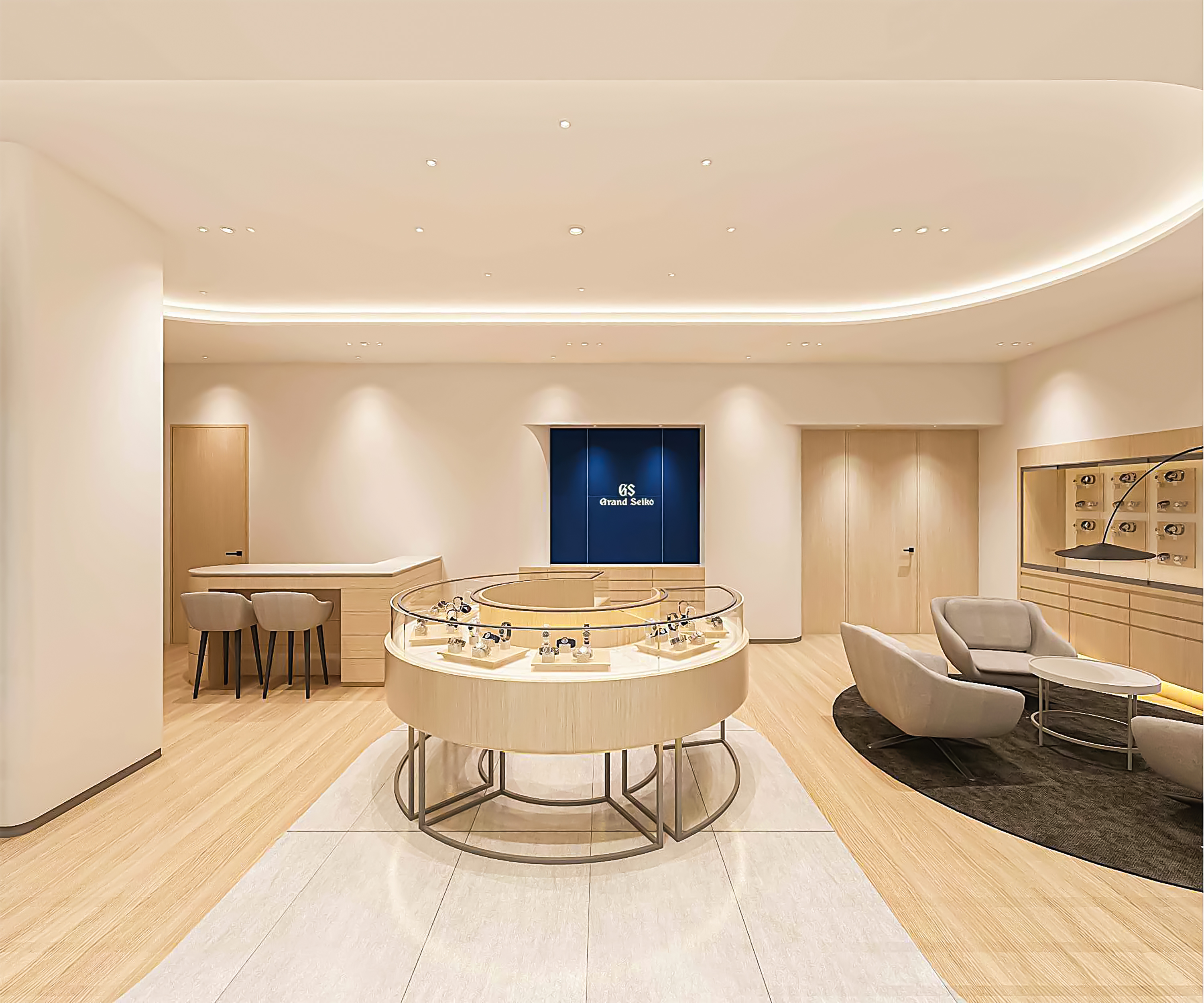 พื้นที่บูติกแห่งใหม่ ผ่านการออกแบบตกแต่งให้สะท้อนถึงศาสตร์แห่งความเที่ยงตรง ความงดงามเชิงสุนทรียะของการประดิษฐ์เรือนเวลาชั้นสูงจากญี่ปุ่น ผสานเข้ากับความสง่างามแบบร่วมสมัย